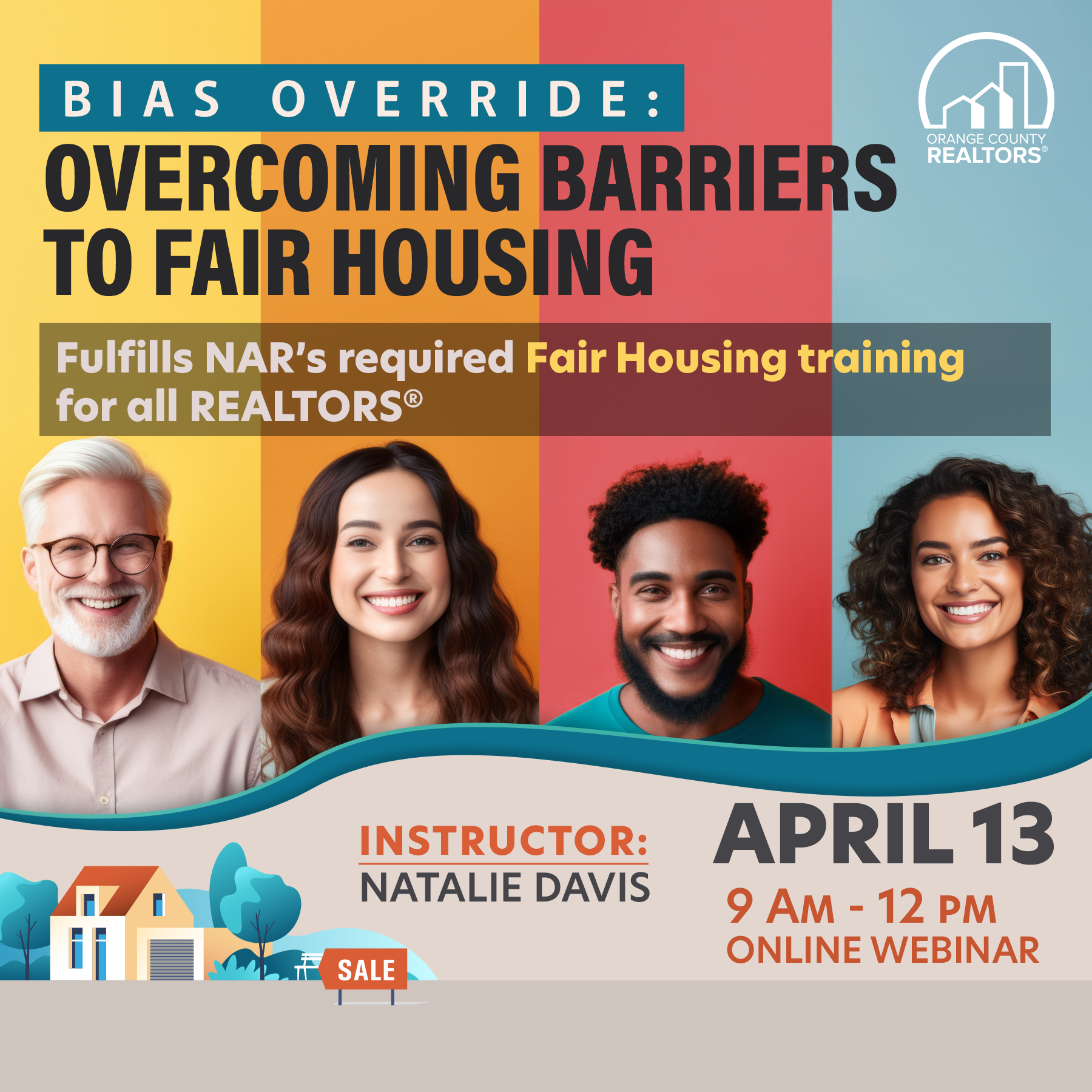 Completion of this course satisfies NAR's Fair Housing training requirement. All REALTORS® are required to complete Fair Housing training every 3 years along with Code of Ethics training. You must attend the course in its entirety to receive credit for completion. No CE credit is provided.